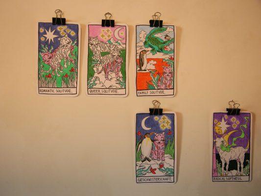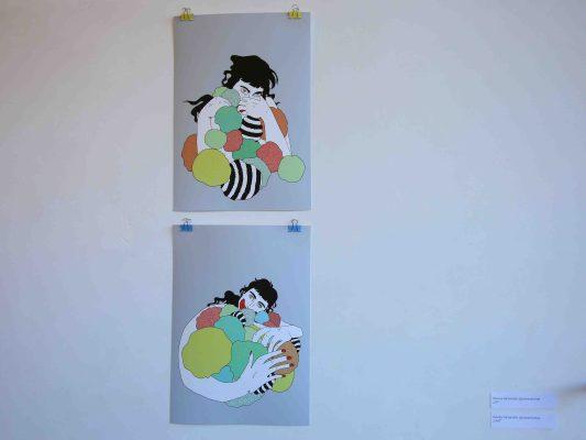 In der Ausstellung zeigten Cosmo Glanc, Dominika Szyszka, Dženny Samardžić, Hakyung Kang, Liz Pfannenschmidt und Melina Rosa Kidess ihre Perspektiven auf Themen wie Identität, Körper, queere Erfahrung und feministische Kämpfe. Jedes Werk war ein Beitrag zu einem gemeinsamen Narrativ – eines, das sich gegen Vereinzelung stellt und für gegenseitigen Support eintritt.