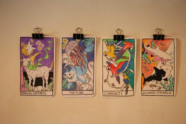 Zur Vernissage vereinten sich 3 FLINTA* Projekte: Zir.kulation (der süßeste safer space für Flinta*s), ALL EYES ON* und Abendbrot von Liz. Empowerment und gegenseitige Inspiration begleiteten diese Abende.