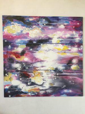 Die dritte Ausstellung „Alles was Gold ist glänzt nicht“ (14.-18.12.) war von Akbar Khurasani. Ursprünglich aus Afghanistan, ging er zum Kunst-Studium in die Ukraine und floh schließlich von dort nach Deutschland. „Diese Welt hat viele Welten, und jeder kann sich in ihr wiederfinden.“, zitierte er zu seiner Vernissage am 14. Dezember aus seinem Manifest, welches eine langersehnte neue Phase seines Schaffens markiert und in der Ausstellung präsentiert wurde. „Meine Reise zu diesem Bild dauerte fast 10 Jahre. Das, wonach ich mein ganzes Leben lang gesucht habe, taucht plötzlich auf.", freute sich der Künstler, während sein Kollege Abel orientalische Klänge darbot.
