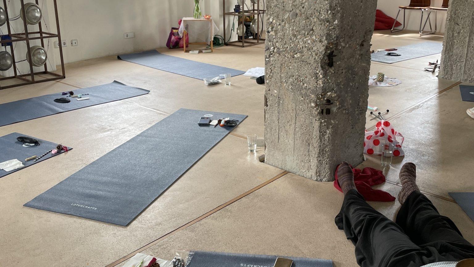Wir machen kleine Übungen aus dem Lachyoga, eine Massage, eine Klangreise, Meditationen, singen Mantras und üben einige Übungen aus dem Yoga zum Loslassen und Entspannen.