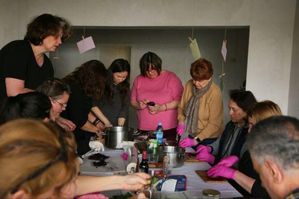 Von Pflanzen Abbildungen auf Stoff in der Tataki-Zone-Technik über magische Naturfarben aus Kohl, Spinat und Roter Bete bis hin zu Girsch-, Brennnessel- und Sauerampferpesto, es war alles dabei.