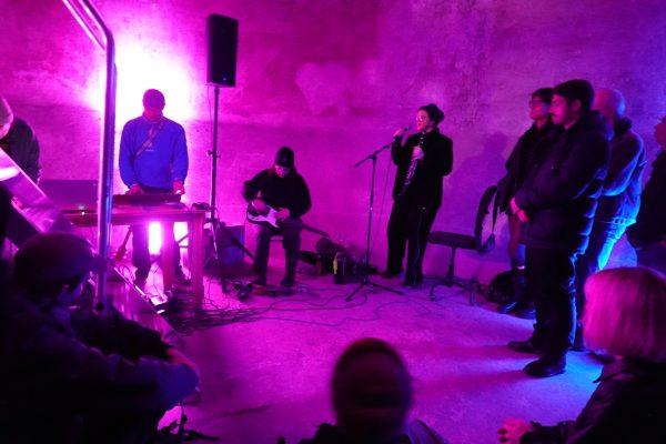 Zur Finissage gab es als besonderen Event noch ein Konzert im alten Wassertank des Oberhausener Bahnhofsturmes. Este Kirchhoff, Maribel Medina Rodriguez, Nora Schlebusch und Nils Andersch boten in diesem industriellen Baudenkmal eine elektronische Soundperformance dar.