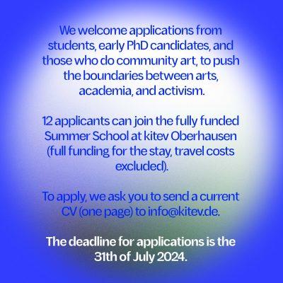 12 applicants can join the fully funded Summer School at kitev Oberhausen (full funding for the stay, travel costs excluded).