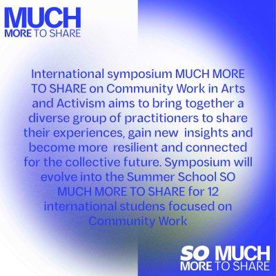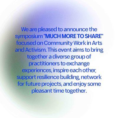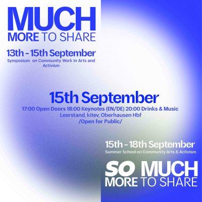 From September 13 to 18, 2024, Oberhausen will become a center for community work in the fields of art and activism. As part of the international symposium MUCH MORE TO SHARE and the summer school SO MUCH MORE TO SHARE, professionals and students from different countries will gather to share their experiences and develop new perspectives.