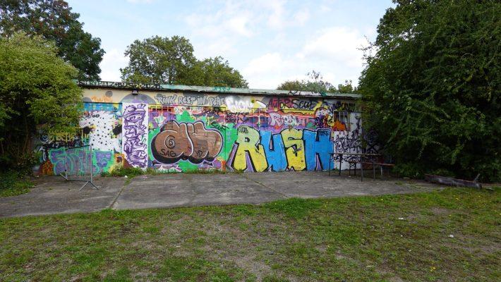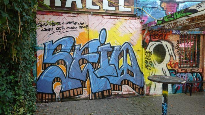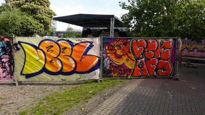 Beim diesjährigen Urban Art Meeting am Druckluft Oberhausen kamen wieder zahlreiche Künstler*innen und Besucher*innen zusammen um bei schönstem Wetter und Musik Wände zu bemalen. Neben den üblichen freigegebenen Wänden im Innenhof wurde als Highlight in diesem Jahr ein Gerüst bereitgestellt um auch die Fassadenfront des Hauptgebäudes neu zu gestalten. Etwa 25 Künstler*innen und ebenso viele Besucher*innen aus verschiedenen Ruhrgebiets-Städten und dem Rheinland kamen zusammen um sich über Erfahrungen und Neuigkeiten auszutauschen und einen bunten Spätsommertag zu genießen.