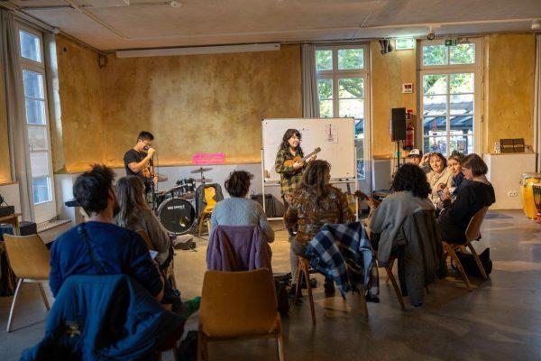 Der Ukulele-Workshop war ein voller Erfolg – mit offenen, neugierigen Teilnehmer\*innen, die gemeinsam neue Klänge entdeckt und Freude am Musizieren geteilt haben.