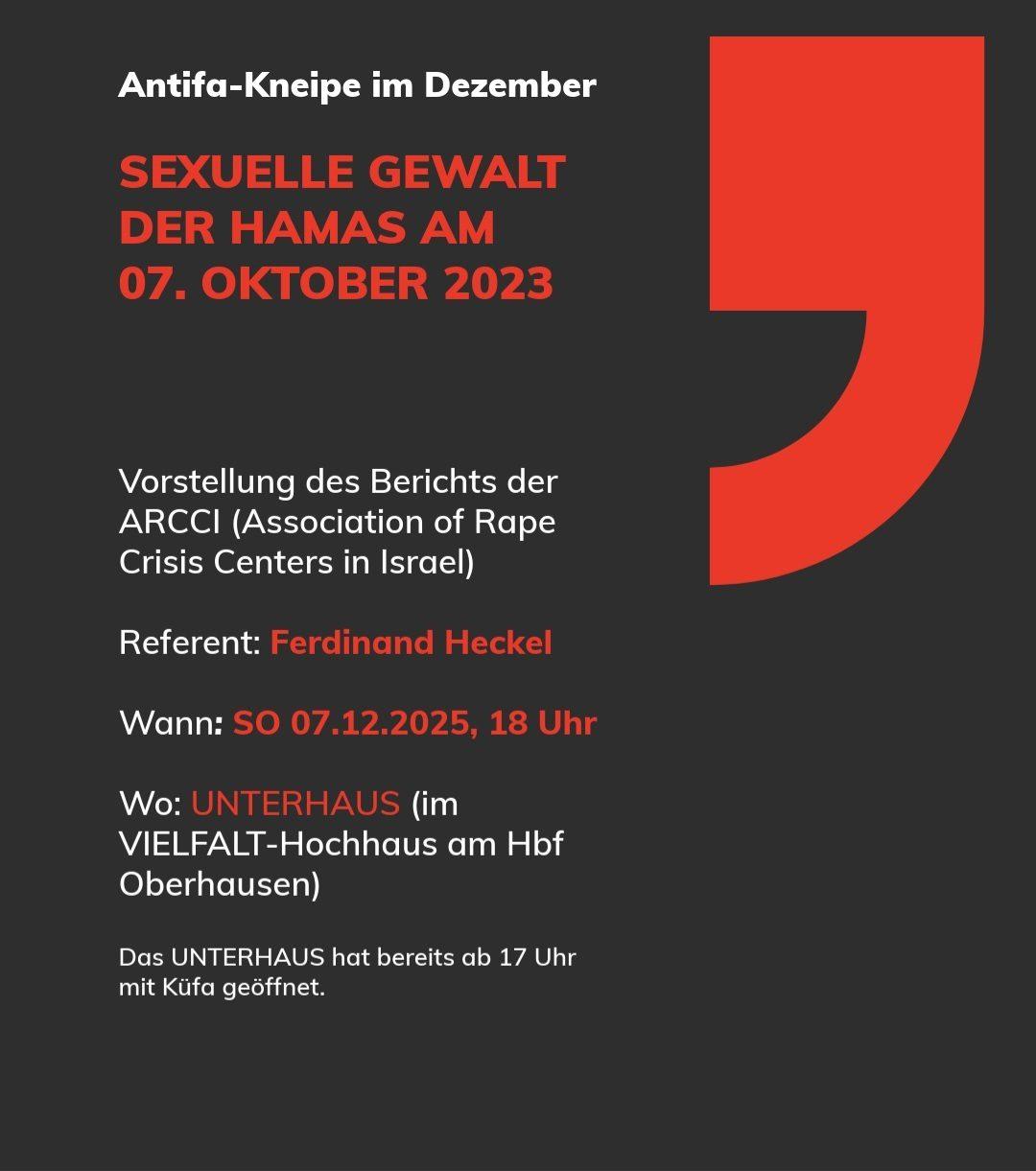 Der Terrorangriff der Hamas, PFPL und PIJ am 7. Oktober 2023 umfasste brutale sexuelle Übergriffe, die gezielt und systematisch gegen israelische Zivilist:innen und insbesondere gegen Frauen verübt wurden.