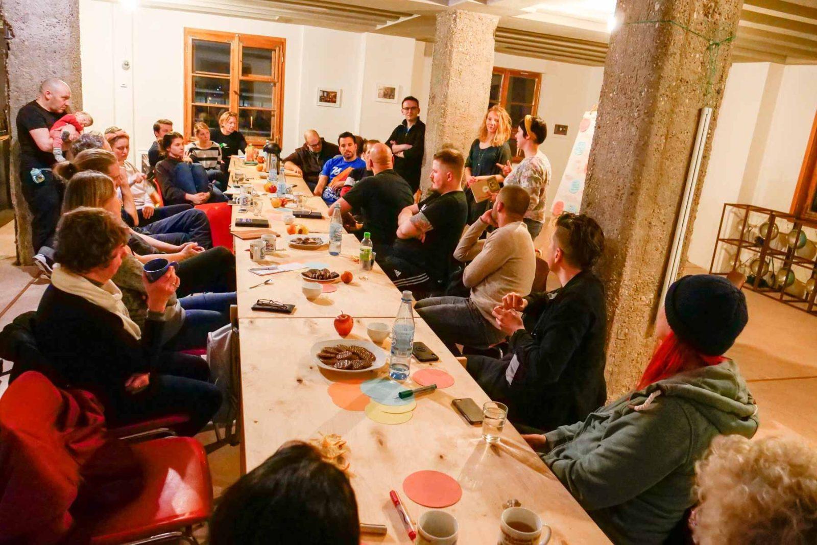 Als Austragungsort eignete sich vor Allem das Unterhaus, das Ladenlokal im Erdgeschoss des Hochhauses in der Friedrich-Karl-Straße 4, welches gleichzeitig mit dem Verlauf der Workshopreihe immer mehr Gestalt annahm. Ob gemeinsames Kochen, Diskutieren oder Gestalten, die Räumlichkeiten bildeten immer genug Platz für einen neuen Nutzen und eröffneten den Teilnehmer*innen der Workshops einen neue Anlaufstelle im Quartier.