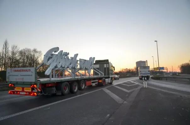 On the 14th of December, the time had come and the letters were fixed at the designated place. In glorious sunshine and minus degrees, a huge crane lifted the elements into the air. By nightfall, the exciting moment of enlightenment had come.