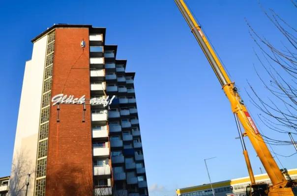 Together with our partner Vonovia, the owner of the building, this project was realized. Our message has been shining into the Ruhr area for two months now and the debate is far from over!