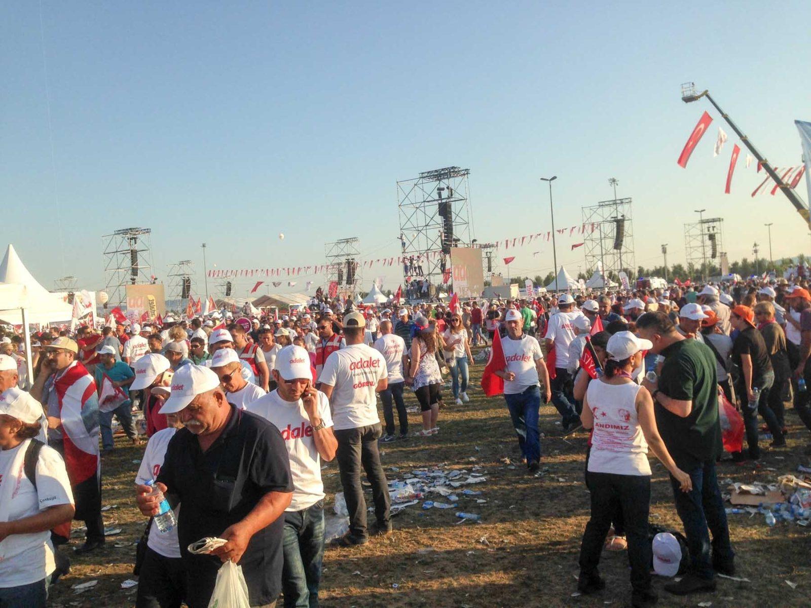 During the stay in Istanbul, also something else and really remarkable happened, which was not on the agenda of the program. The „big march for justice“ of the leader of the biggest opposition party (C.H.P) has arrived in the city and a few of the participants joined in. During the rally of Kemal Kilicdaroglu from Ankara to Istanbul (425km!), thousands of people have entered the march. At its final point in Istanbul, there was a huge demonstration. You could feel the tension in the air, but also hope. Lots of people called this a historic moment, when the peaceful protesters reminded the government, at the moment ruling by decree and intimidation, about the social contract: the citizens are willing to submit to the authority of the state in exchange for the protection of civil rights. Instead, in the last year since the coups d’etat, the Turkish democracy has shifted in another direction.