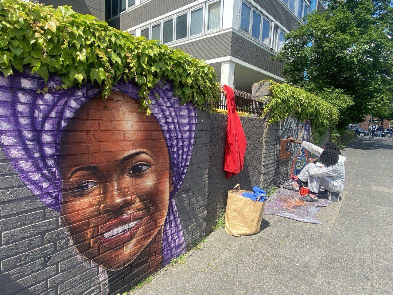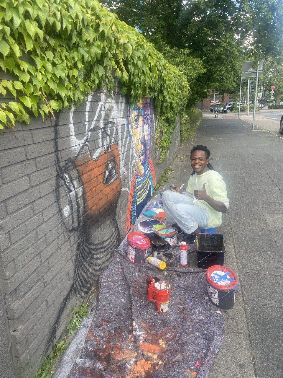 The three Kenyan artists Adam Masava, Brian Kimani and Isaiah Malunga are part of the Mukuru Art Collective from the slums of Nairobi. As part of their residency at The Urban Art Meltingpott project, they are guests at kitev and are working on various projects in the Ruhr region. Last week, they already held an exhibition and workshops at schools in Essen. Now they are in Oberhausen until June 5. They are currently designing the wall at Friedrich-Karl-Str. 1-7 at Oberhausen main station and will then present further works of art at an exhibition in the Unterhaus Galerie. They will also be available for interviews in the run-up to the exhibition.