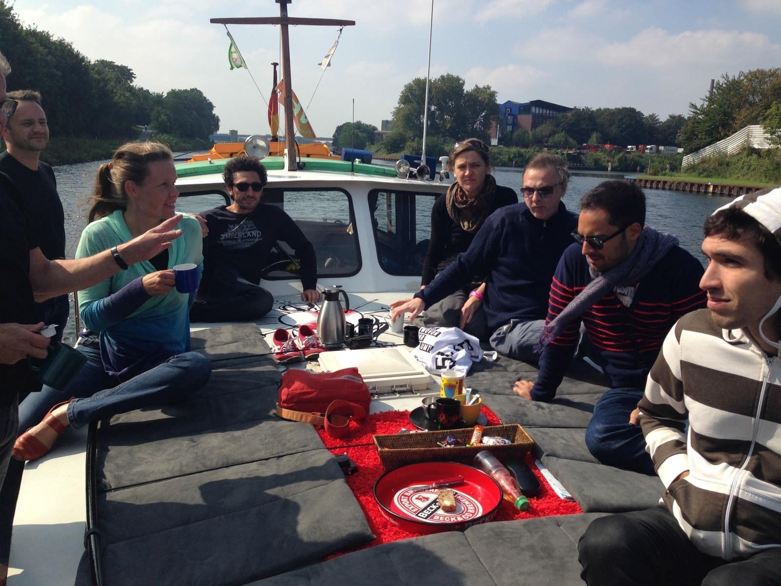 The first workshop on ‘Bending Urbanism’ took place in Kitev in September 2014. Two researchers of urban development – Francesco Bonsinetto from Italy/US and Kaisa Schmidt-Thomé from Finland – have launched a research network by collecting their trusted partners together Europe-wide, and even beyond. Individual researchers are invited to join the initiative if they are passionate about cities and are willing to search for international project funding in collaborative spirit. As the research topics relate also with urban culture and creative collaboration of diverse urban actors, Kitev was a very suitable venue, and represents also a potential project partner. During the social programme of the workshop the scholars also familiarized themselves with the region. Oberhausen and Mülheim an der Ruhr set the stage of the “54th City” theatre tour, Duisburg-Ruhrort was approached via the Rhein-Herne-canal by a small boat called Oskar, as well as by train to listen to a concert of “Das grosse Ding” in the heart of the creative quarter.