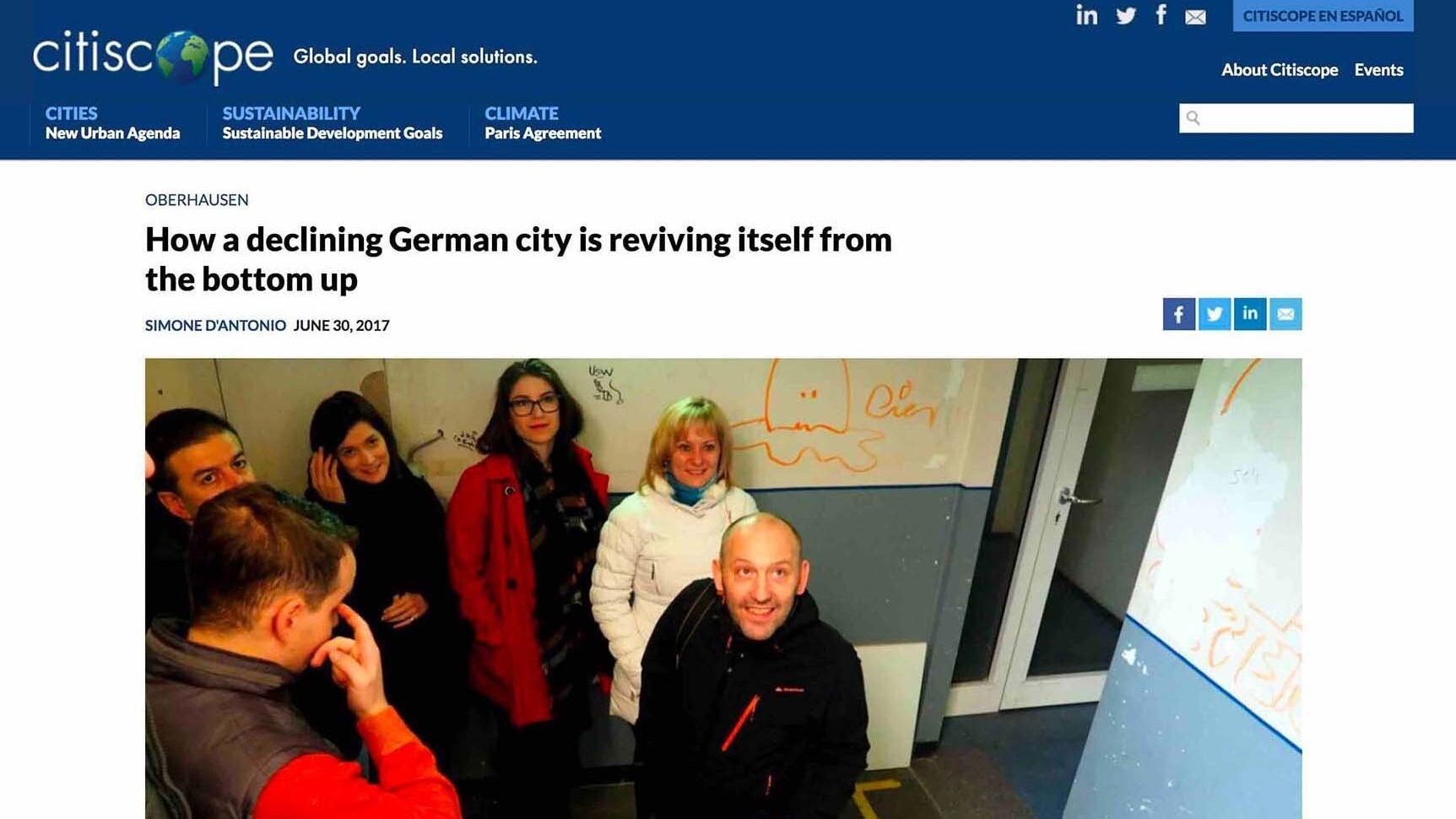 Simone D´Antonio, was our guest here in Oberhausen. As a journalist he's writing for Citiscope, il Manifesto, Wired and others. His tiopics are innovation, sustainability and urban issues. Besides this he's working for Cittalia Foundation, a branch of ANCI (National association of Italian cities and municipalities) dedicated to research and study activities on issues of major interest for Italian Municipalities.