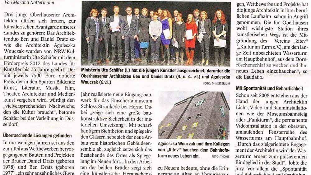 Von der Preisverleihung des Landespreises für junge Künstlerinnen und Künstler berichtet heute NRZ.