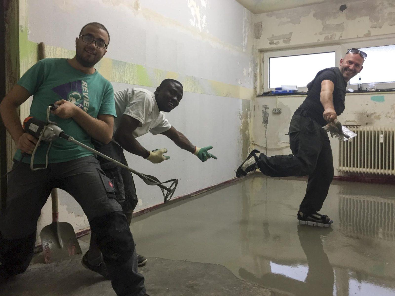 At the end, of course, was the time for the decorative finish. The wall tile line above the worktop in the kitchen has now been extended by a harmonious pattern mix. As soon as the last tile was set, the long-awaited new kitchen appliances finally arrived in the „Unterhaus“. By looking at the six-burner gas stove, many professional chefs would likely get tears of envy in their eyes. Our colleague Ahmad can hardly wait for the new equipment to be in use. This will already be the case in the coming days, when it´s time for d.ramadan! Because there the Refugees' Kitchen supports the great program by the Theater Oberhausen on 23 days with an evening of breaking the act of fasting.
