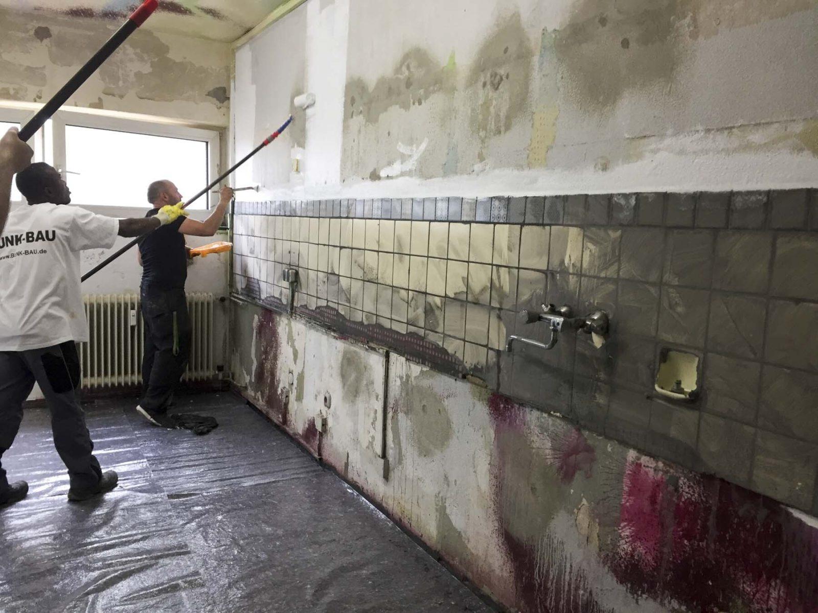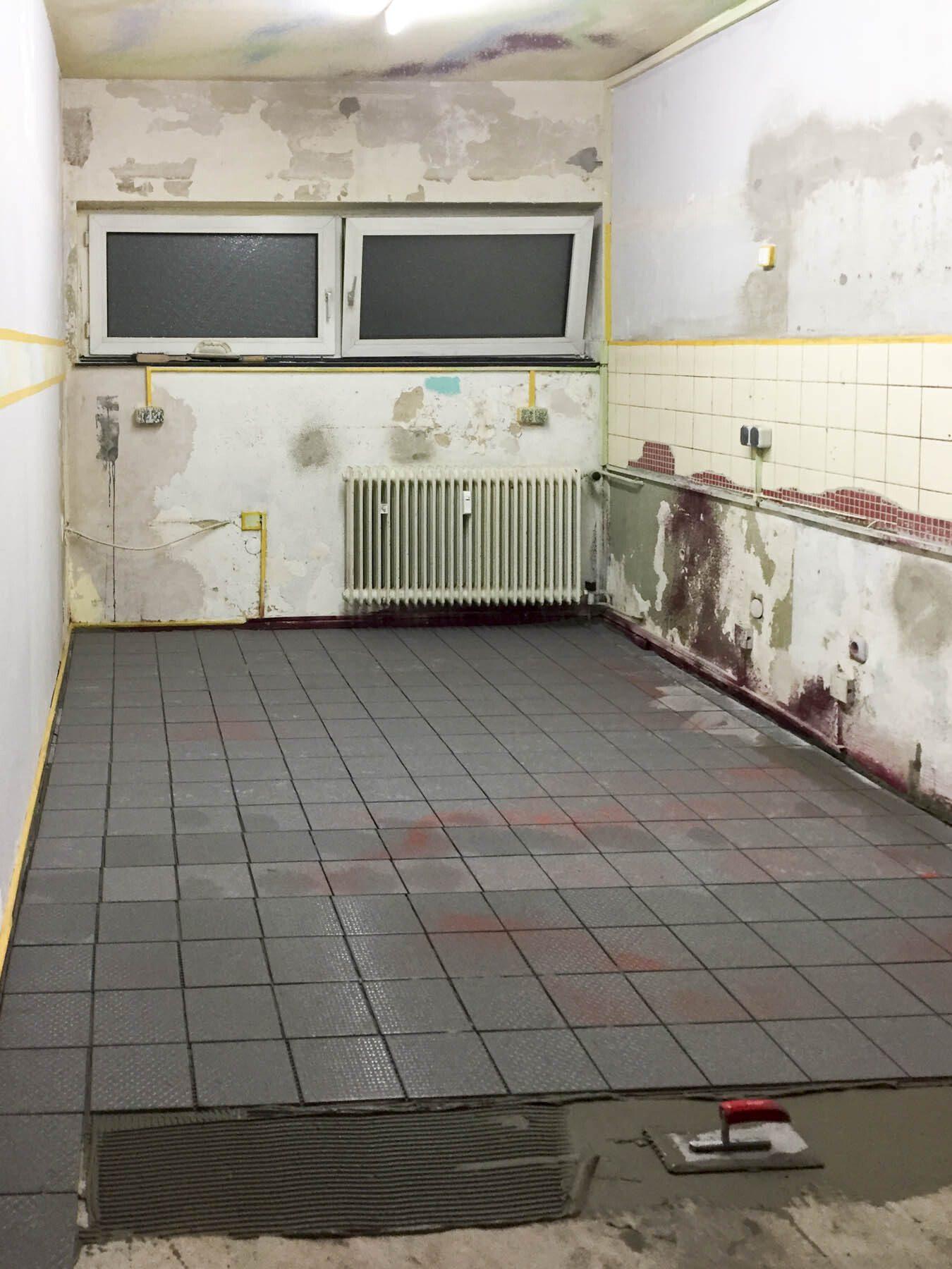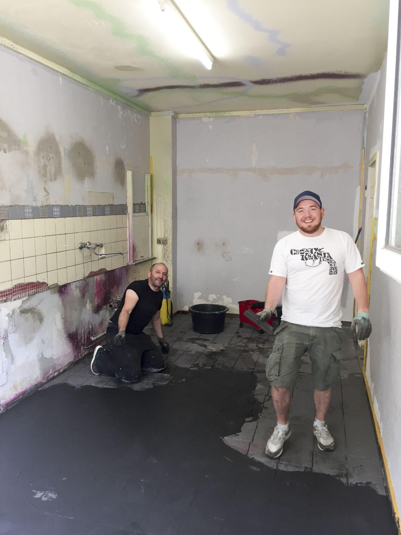 Kaum war dies geschehen, ging die Arbeit unverzüglich weiter. Die Fliesen wurden verlegt. Auch wieder eine Aufgabe, die sich nicht auf die Schnelle erledigen ließ. Da wurde der Blick auf die Uhr schnell überflüssig und die ein oder andere Nachtschicht eingelegt.