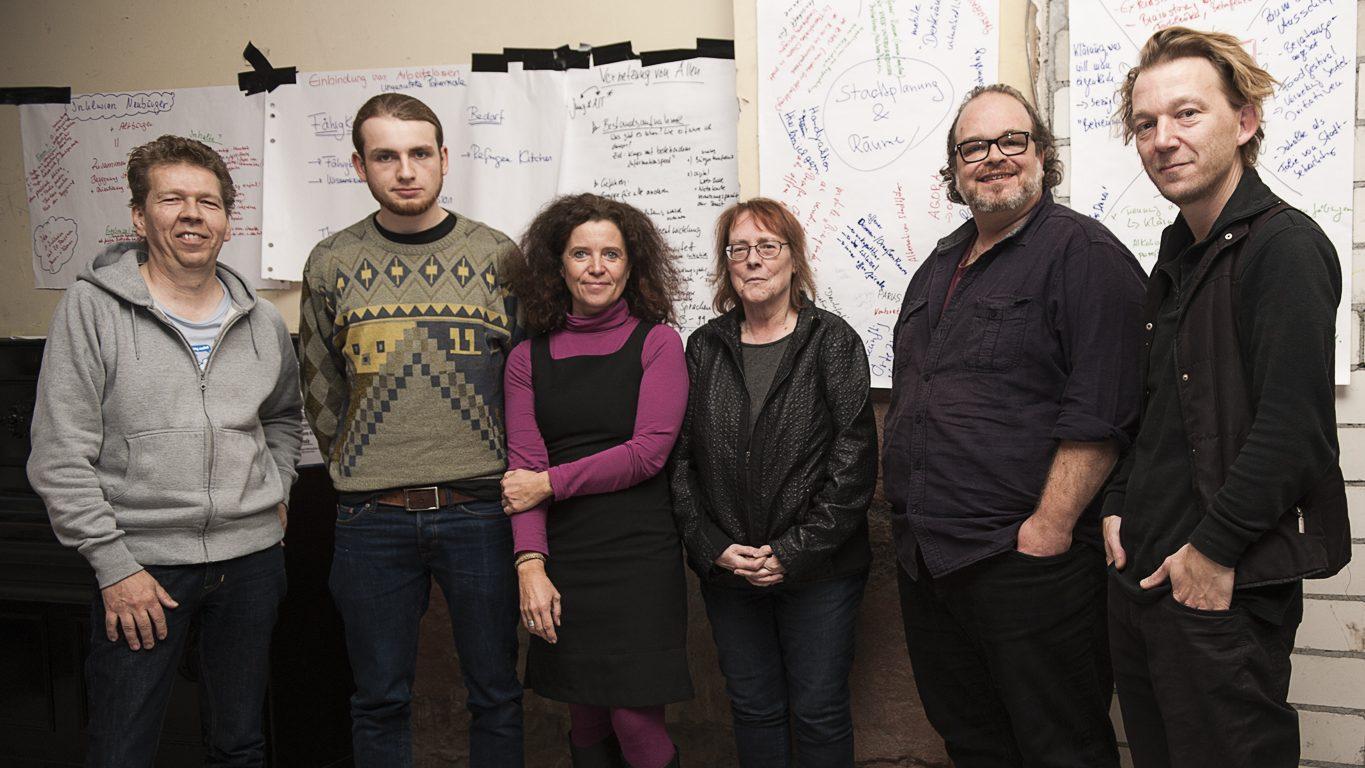 Wieder gerahmt von den Uni-Dekanen v.r.n.l.: Seminarleiter Axel Scherer, freie MitarbeiterInnen Heidi Scholz-Immer, Anke Troschke, Julian Elbers. Nicht im Bild der Co-Seminaleiter René Jankowski, weil – Foto: (c) René Jankowski