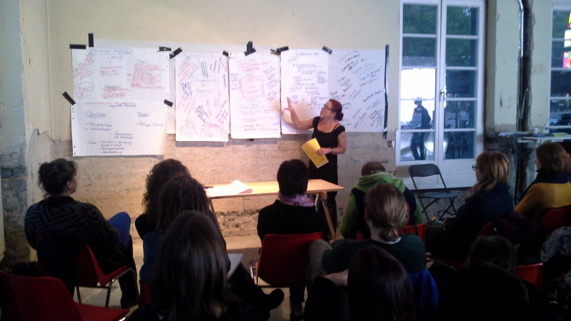 Am letzten Freitag trafen sich knapp 30 BegründerInnen der Uni im kitev-Leerstand: vom Jugendlichen bis zur Rentnerin, BürgerInnen, KünstlerInnen, in beruflich oder/und privat in unterschiedlichsten Initiativen in und für Oberhausen bereits Engagierte. In dreistündiger Plenums-, Kleingruppen- und wieder Plenunmsarbeit eruierte diese Gründungskommission die in/für Oberhausen virulenten Themenfelder und entwarfen fünf Seminare zur theoretischen und praktischen Arbeit an diesen Themen.