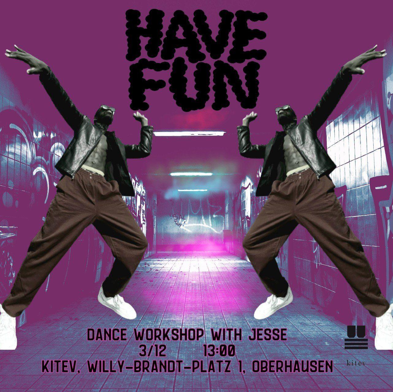 Dance mit Jesse Jesse, der Afro- und Hip-Hop-Tänzer aus Kamerun, bringt kulturellen Austausch und Inspiration auf die Tanzfläche. Da er mehrere Jahre in der Ukraine gelebt und getanzt hat, verspricht er einen lebendigen Workshop, bei dem es vor allem um Selbstdarstellung und Spaß geht.