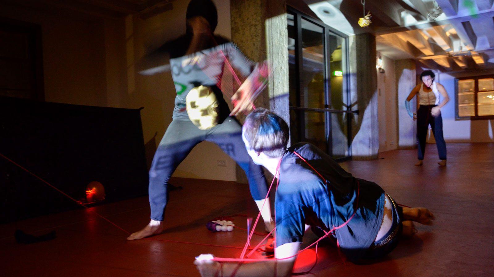 Anschließend tauchte die beeindruckende Performance von und mit Paulina Almeida, Sara Hasenbrink, Joscha Hendrix Ende und Julius Gabriel im Lokal Harmonie in Duisburg, im Trotz Allem in Witten und in der Galerie KARO in Essen auf und erfuhr auf diesem Weg vielfältige Verwandlungen. Beschreibungen, viele Fotos und zwei Videos (Ausschnitte aus der Premiere im kitev-Turm) enthält die Projektseite www.kulturtunnel.ruhr.