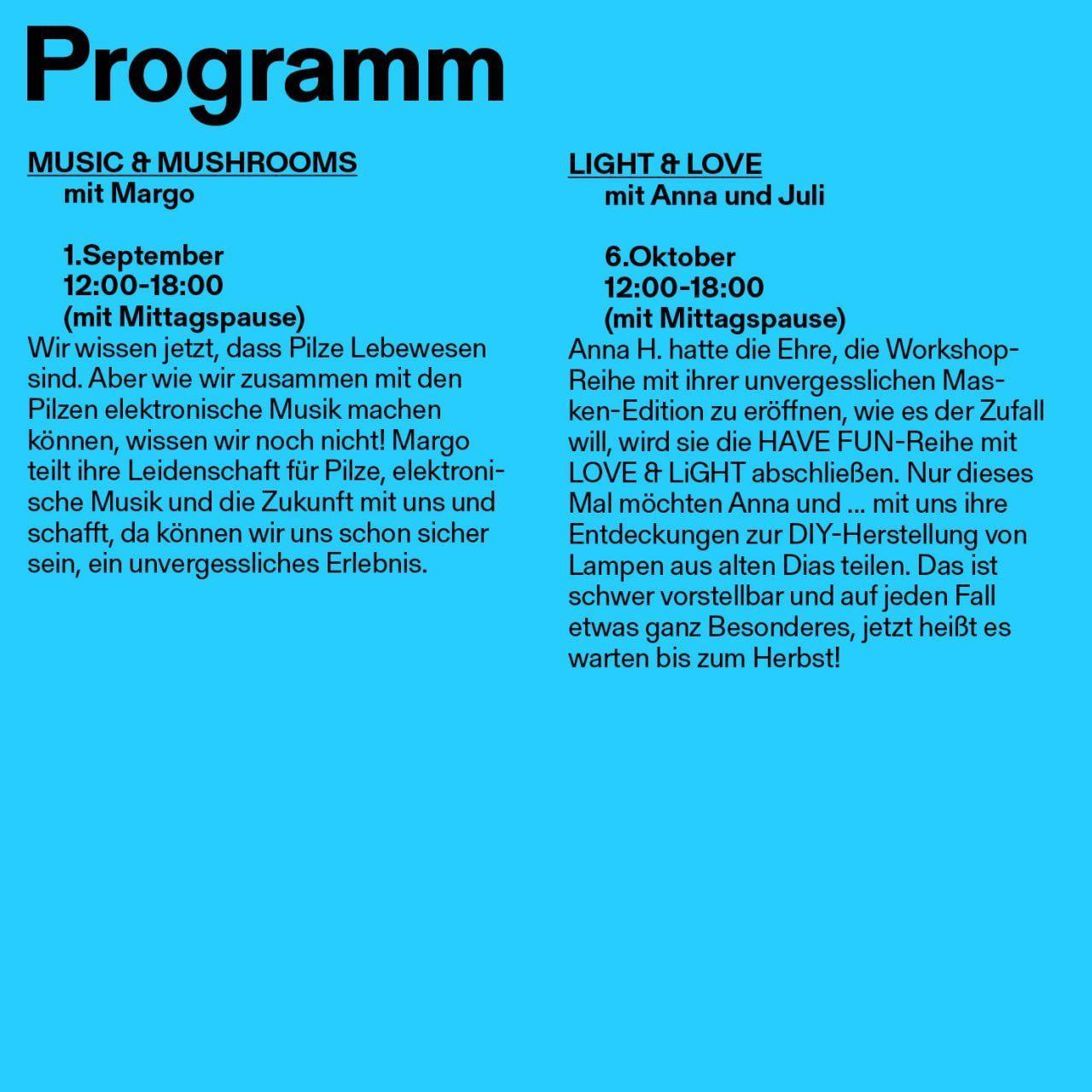 Anna H. hatte die Ehre, die Workshop-Reihe mit ihrer unvergesslichen Masken-Edition zu eröffnen. Wie es der Zufall will, wird sie die HAVE FUN-Reihe mit LOVE & LiGHT abschließen. Nur dieses Mal möchten Anna und ... mit uns ihre Entdeckungen zur DIY-Herstellung von Lampen aus alten Dias teilen. Das ist schwer vorstellbar und auf jeden Fall etwas ganz Besonderes, jetzt heißt es warten bis zum Herbst! Begrenzte Teilnehmerzahl, bitte anmelden unter: genau@kitev.de
