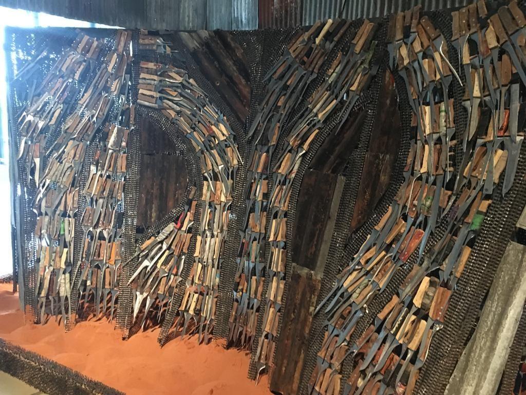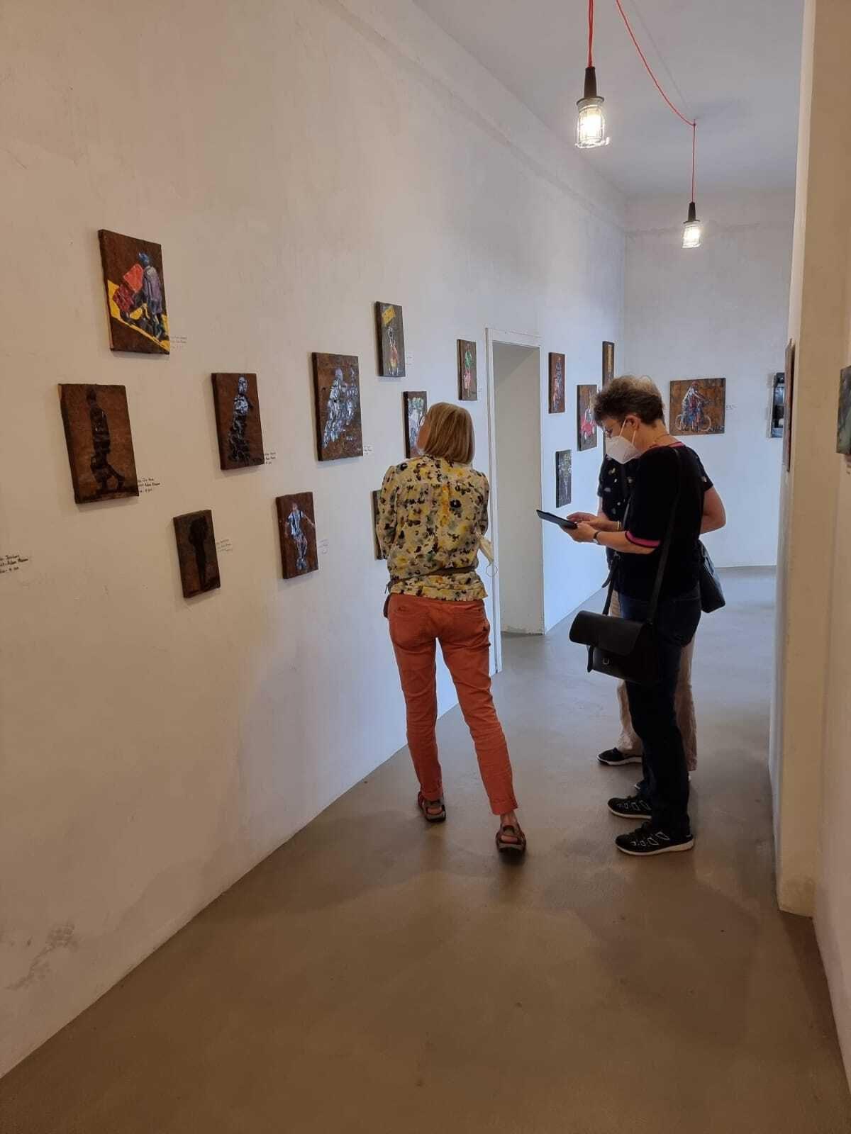 Beim Netzwerk Faire Metropole Ruhr in Gelsenkirchen gibt es auch noch eine Tagesaustellung, bevor das Residenzprogramm der Beiden im Ruhrgebiet mit ihrem Vortrag bei der Freien Uni Oberhausen und dem letzten Ausstellungstag in der Unterhaus-Galerie seinen Abschluß findet. Der Vortrag beleuchtet noch einmal eindrücklich die soziale Situation ihres Herkunftsortes in den Slums von Nairobi, ihre tolle Arbeit mit einer Kunstschule für Jugendliche und den positiven Effekt von Kunst auf das Leben sowohl Einzelner als auch der Gesellschaft.