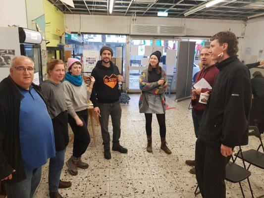 Da die b-side aktuell dabei ist ihren sanierten Hafenspeicher mit einer neu konzipierten offenen Werkstatt auszustatten, war der Austausch mit Nutzer*innen des Supermarkts der Ideen besonders hilfreich, da ein Umbau sowie Aus- und Wiedereinzug dem Supermarkt-Team auch bevorsteht. Die mit 160m² große Werkstatt der b-side kann sehr flexibel genutzt werden, weshalb die Holz-, Metall-, oder Fahrradwerkstatt mit wenig Umbauarbeit und leicht verschiebbaren Arbeitsmodulen bestückt wird. Bei der Anschaffung der Maschinen wurde bewusst versucht auf gebrauchte Geräte zurückzugreifen, um ressourcenschonender zu arbeiten. Eine kommerzielle Nutzung der Werkstatt durch professionelle Handwerker*innen, die sich temporär einmieten können, ist nicht vorgesehen.