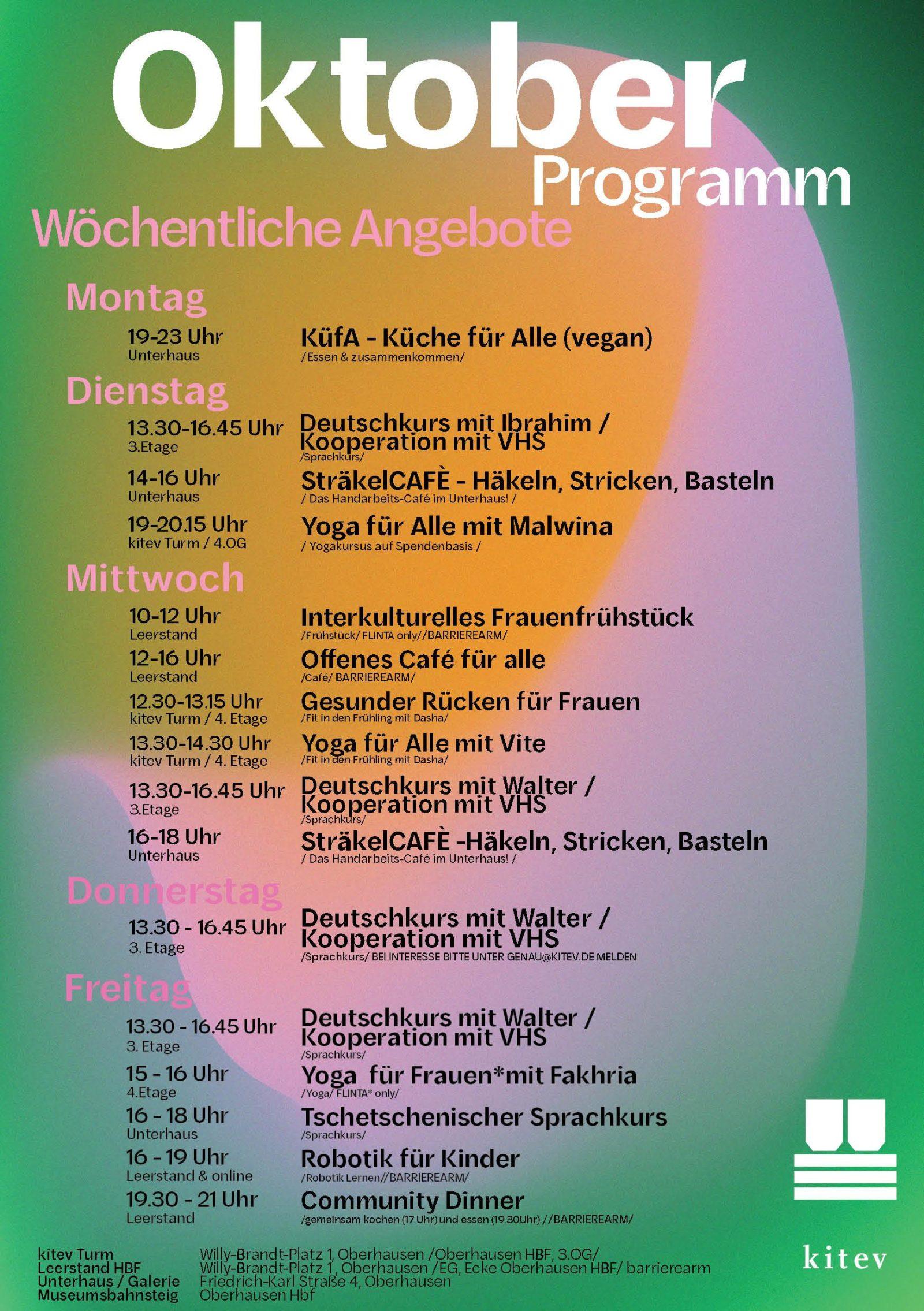 📌 Unser wöchentliches Programm im Oktober
