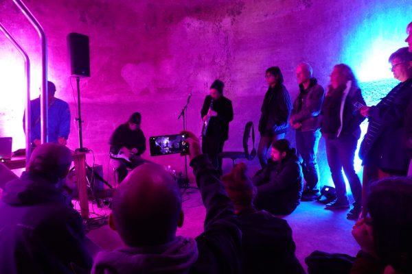 Zur Finissage gab es als besonderen Event noch ein Konzert im alten Wassertank des Oberhausener Bahnhofsturmes. Este Kirchhoff, Maribel Medina Rodriguez, Nora Schlebusch und Nils Andersch boten in diesem industriellen Baudenkmal eine elektronische Soundperformance dar.