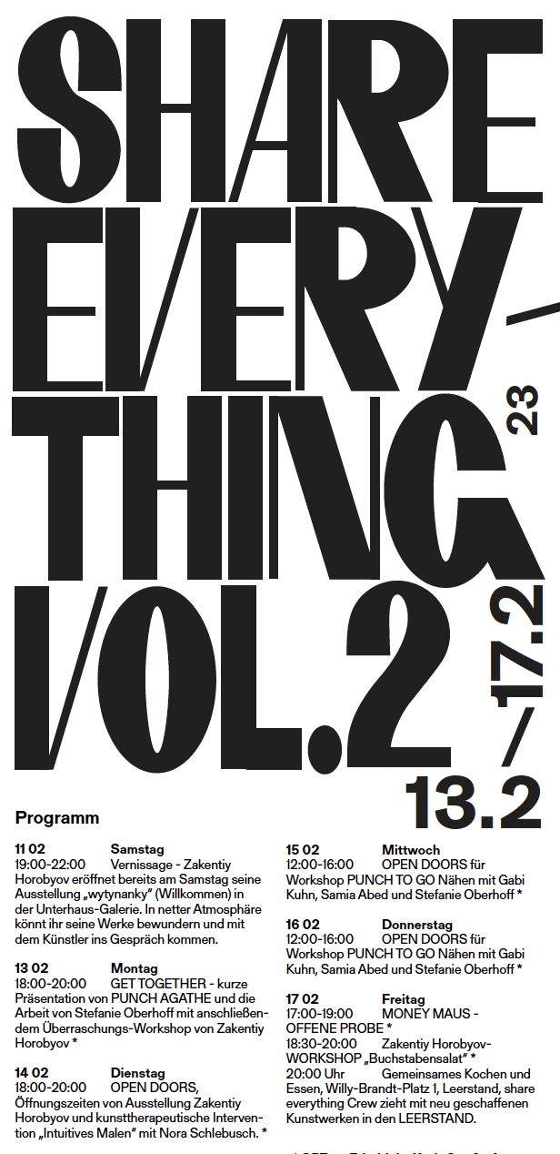 Wir haben es euch ja versprochen...diese Woche wird garantiert nicht langweilig! Denn die performative Ausstellung SHARE EVERYTHING geht in die zweite Runde.
