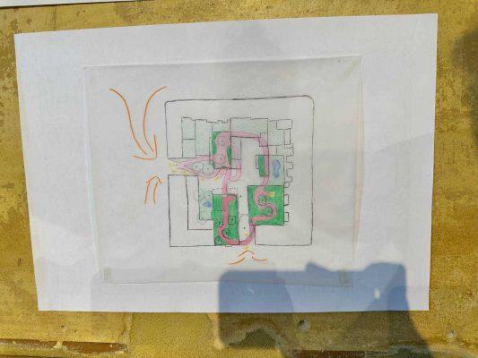 Am Ende der Spring School wurden drei sehr unterschiedliche Nutzungskonzepte präsentiert. Das erste Konzept, der „Bunte Bunker“, legte den Fokus auf die vielfältige Innennutzung des Bunkers. Hier wurde ein bunter Mix aus verschiedenen Nutzungen kombiniert, um den Raum lebendig und vielseitig zu gestalten. Eine andere Gruppe richtete ihre Aufmerksamkeit stärker auf den umliegenden Raum und die Verbindung des Bunkers mit den benachbarten Gebäuden. Ihr Ziel war es, den „Nicht-Ort“ Bunker in eine einladende Oase zu verwandeln. Die dritte Gruppe entwickelte ein monothematisches Nutzungskonzept: Als „Schwitzkasten“ soll der Bunker künftig ein Ort für Sport und Bewegung sein, der sozial gerechte Teilhabe in den Mittelpunkt stellt.