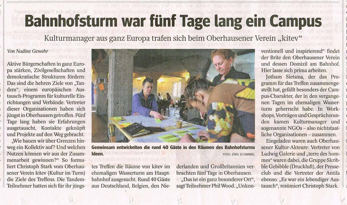 Die sieben Tandems sind nun abgereist. Es war eine bewegte Woche, gespickt mit vielen tollen Begegnungen, Gesprächen, Plänen und konkreten Projekten. Die knapp 40 Teilnehmer kamen aus den Niederlanden, Belgien, Großbritannien und Deutschland und arbeiten in ihren jeweiligen Städten vorrangig an partizipativen Kunst- und Kulturprojekten.