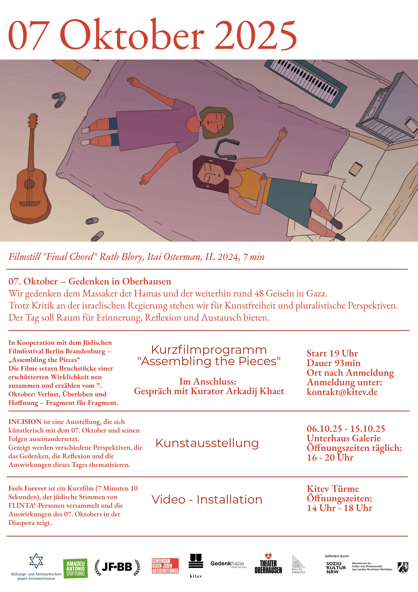 Der Gedenktag erfolgt im Rahmen unseres Kooperationsprojekts mit dem Theater Oberhausen, der Gedenkhalle und dem Büro für Interkultur der Stadt Oberhausen: "Gemeinsam gegen jeden Antisemitismus", gefördert vom Land NRW und der Stadt Oberhausen.