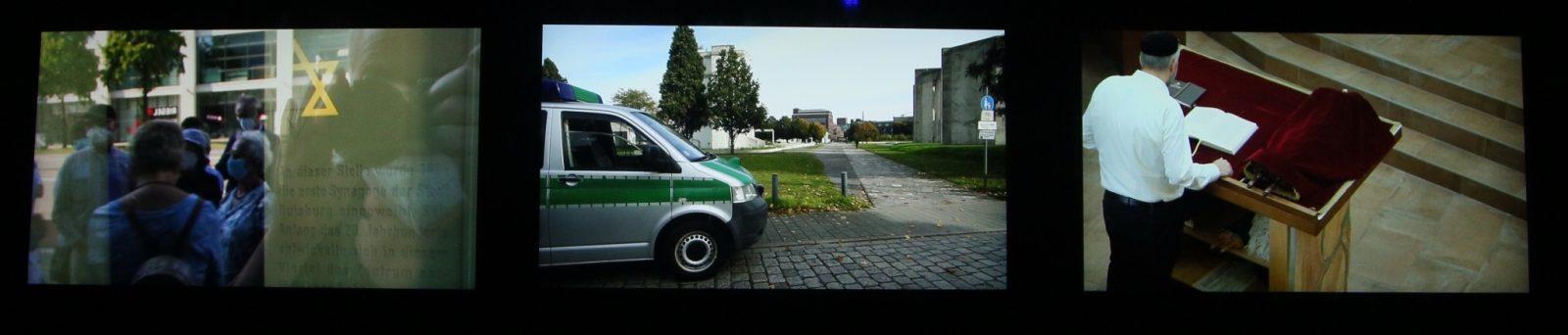 Nach ihrer Vernissage am SA 02.11.2024 im Innenraum des Lokal Harmonie in Duisburg-Ruhrort wanderte die Bewegtbildinstallation von Ruth Bamberg ins Schaufenster des Lokals und war von außen, auf der Ruhrorter Harmoniestraße, von MO 04.11.2024 bis SA 16.11.2024 täglich von 17 h bis 19 h zu sehen und auch zu hören. Die Duisburger Finissage erfolgte noch einmal im Lokal Harmonie, ergänzt um einen Vortrag von und ein Gespräch mit dem Historiker und Judaisten Dr. L. Joseph Heid, der auch wissenschaftlicher Begleiter der Arbeit war.