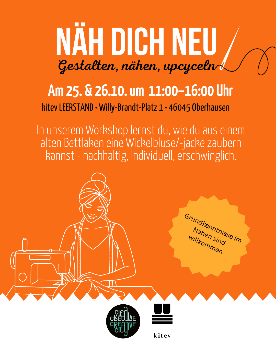 Gestalten * nähen * upcyclenSo., 26.10.2025 | 11:00 – 16:00:00 | kitev LEERSTAND, Willy-Brandt-Platz 1, 46045 Oberhausen - neben dem Hauptausgang, bei den Fahrradständern