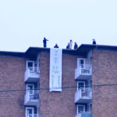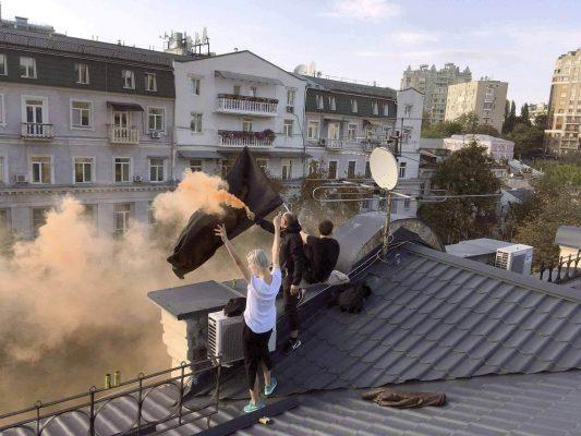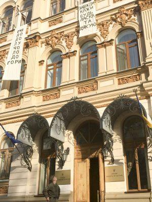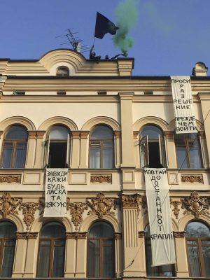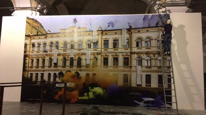 The Mystetskyi Arsenal where spot for an exhibition called „Today, which never came“ in which 67 statements by young Ukrainian artists were shown including a 3x5 m image of the performance inside and on top of the ministry of culture. This exhibition took place until the 31h of october 2017.