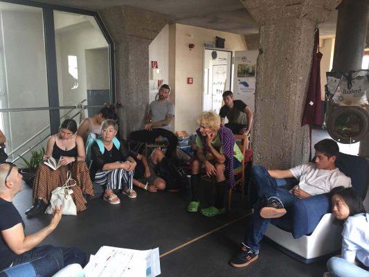 Stark gave the group three options: those who wanted to design solutions and create visuals could stay in the water tower, those who were up for manual labor were welcomed to the warehouse/kitchen and those interested in a nap were offered beanbags. The first group, led by Dobson and mainly consisting of graphic design majors, worked with Kitev’s, Agnieszka Wnuczak, and Gesina Rath, to address Kitev’s undertaking to serve food at West Germany’s largest contemporary theater, [proceeds of which will benefit the Refugee Kitchen. The second group followed Stark across the street where they were to clean up the warehouse and help Refugee Kitchen chef Ahmad Abbas and volunteers Selma and Imad Itef, cook Ramadan dinner. The beanbags remained empty.